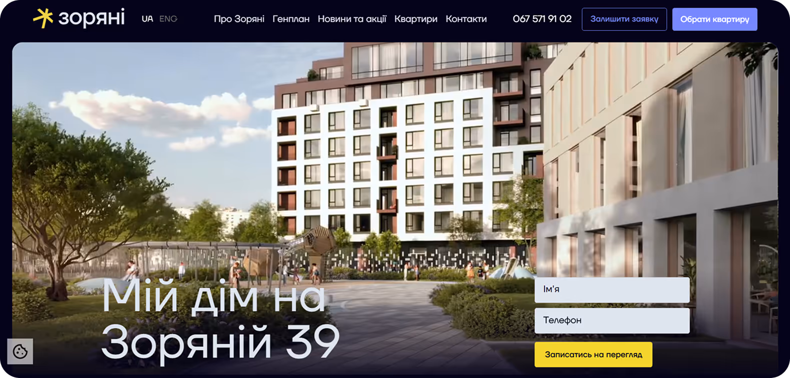 Яскравий цифровий відбиток вашого проекту нерухомості, який інтегрується в сучасний сайт та CRM-систему та підсилює роботу відділу продажів і маркетингу.